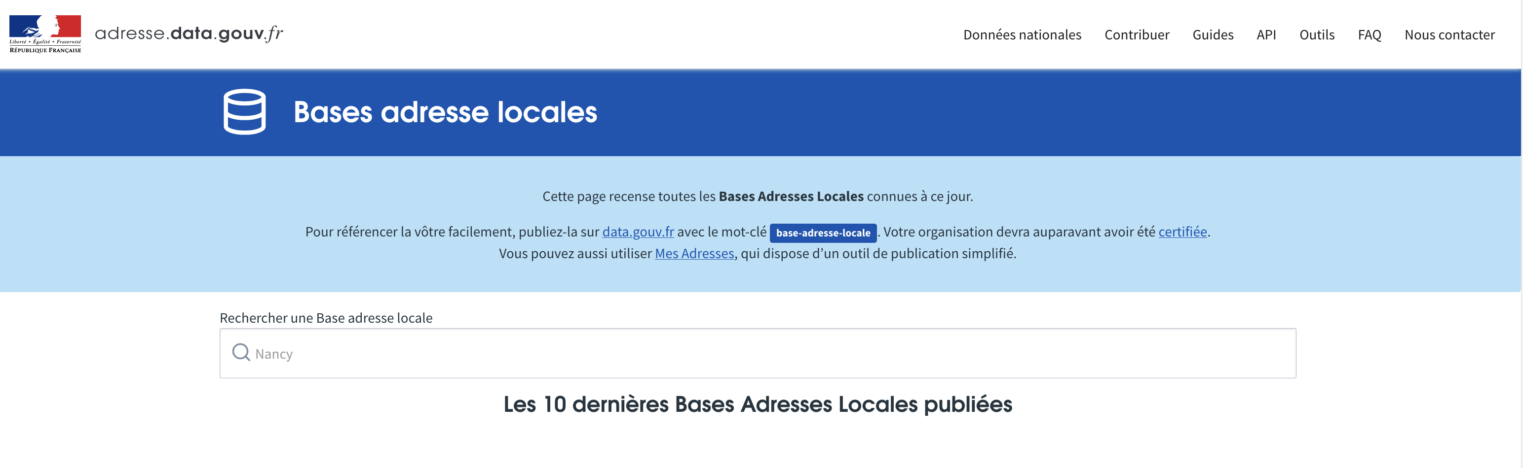 Faire savoir où consulter les adresses dans la Base Adresse Nationale