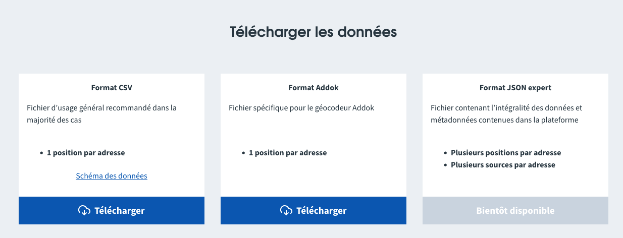 Faire savoir où télécharger les adresses officielles de la Base Adresse Nationale
