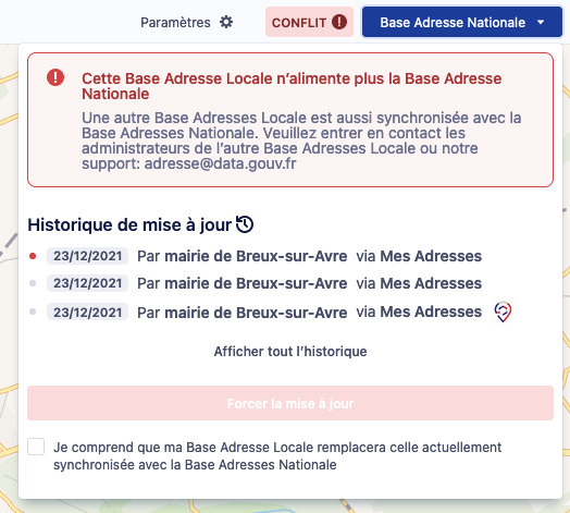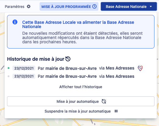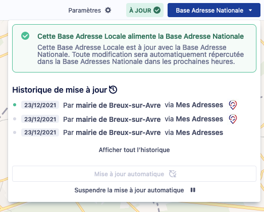 Il est possible de mettre à jour manuellement afin que les modifications soient prises en compte immédiatement dans la Base Adresse Nationale.